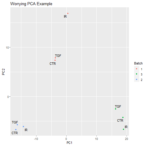 These PC values can be combined with the (corrected) sample information and used to make a familiar plot