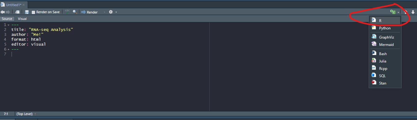 R code can be added to this document by clicking the “Insert Code Chunk” toolbar option
