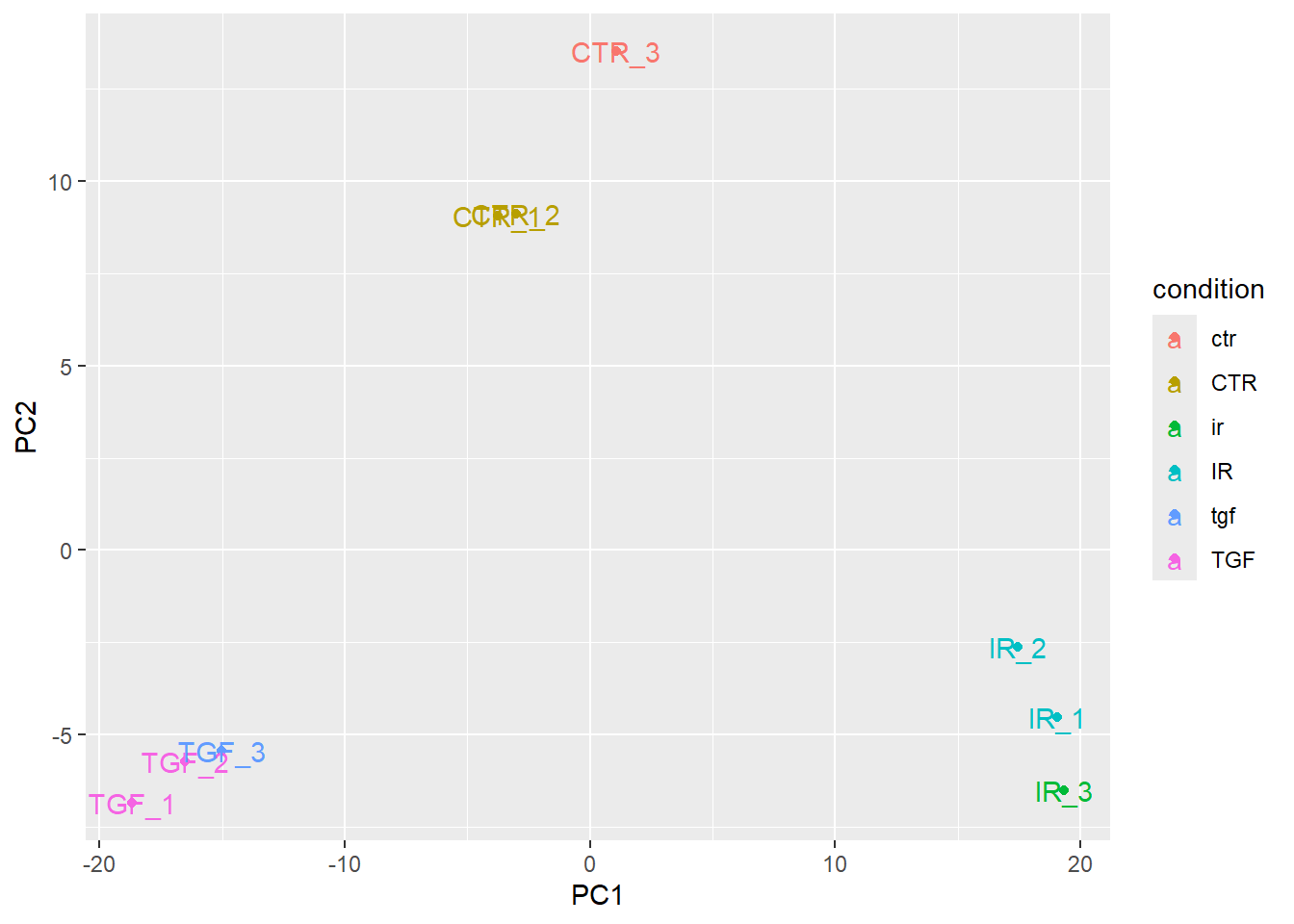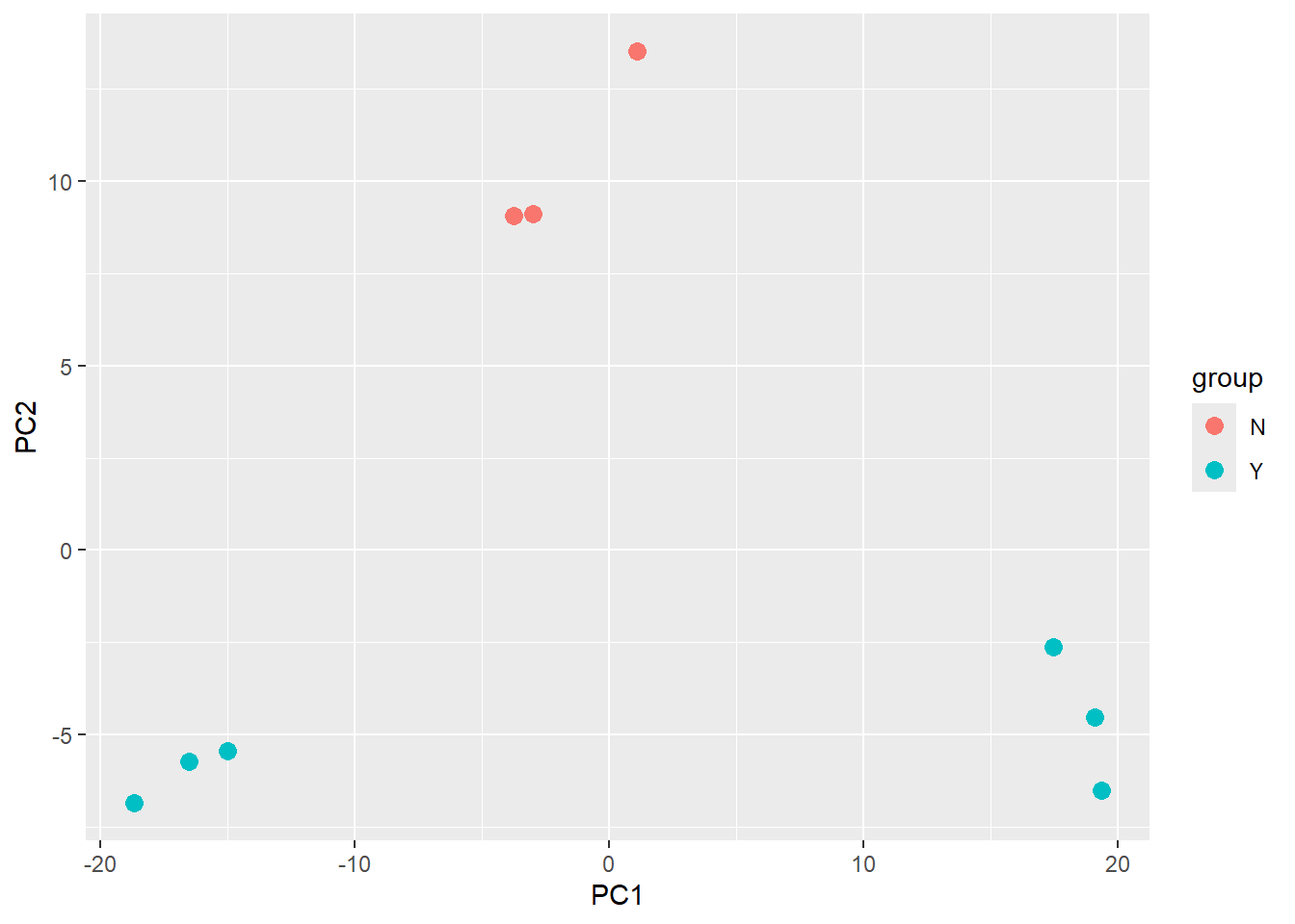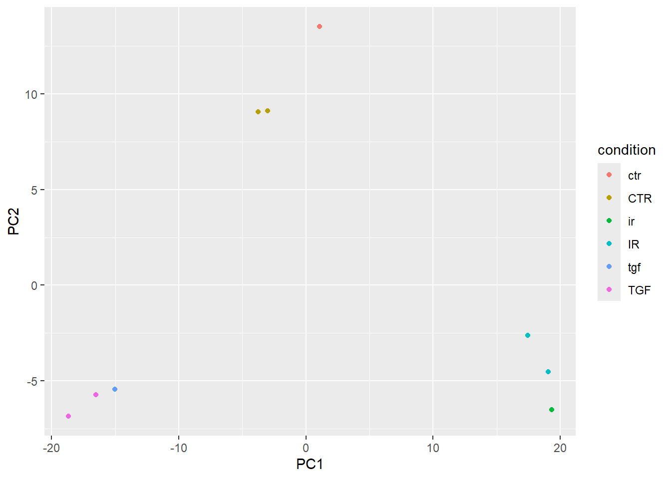 These PC values can be combined with the (corrected) sample information and used to make a familiar plot