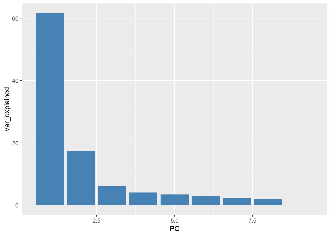 var_explained <- pca_results$sdev^2 / sum(pca_results$sdev^2)*100